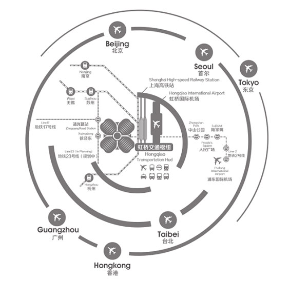國家會展中心(上海)地處長三角核心腹地,坐落在上海虹橋商務區核心區西部,與虹橋交通樞紐直線距離僅1.5公里,通過空中連廊、地下通道及地鐵2號線與上海虹橋火車站、虹橋機場緊密相連,周邊高速路網四通八達,1至2小時可到達長三角各主要城市,航空2至3小時可直達亞太主要經濟城市。